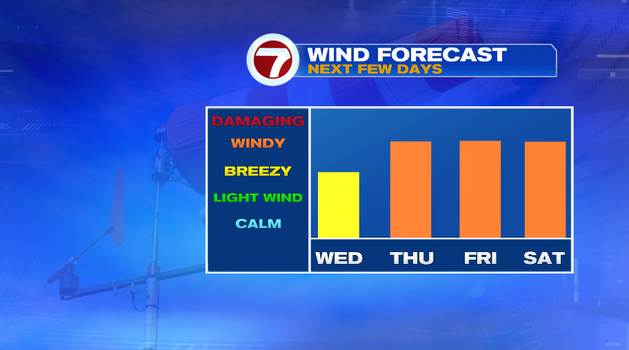 The other thing to get used to for the rest of the week is the wind. A cold, raw breeze will be here tomorrow, but as we get closer to that Thursday storm, the wind will pick up even more. What’s initially a gusty wind within the storm itself, then it becomes a strong west to northwest wind on the backside of the storm as it exits Friday and Saturday. While the Halloween forecast looks promising for trick or treating (low spot shower chance), it may be a gamble to keep those inflatables up for Friday and Saturday.