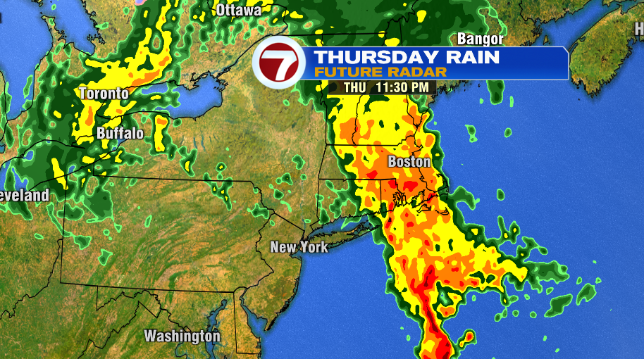 While Melissa will not impact New England directly, it will indirectly throw some heavy rain our way on Thursday evening and Thursday night. The area of low pressure that will be moving through, will actually pull some tropical moisture from Melissa and create tropical downpours here, Thursday evening and Thursday night.