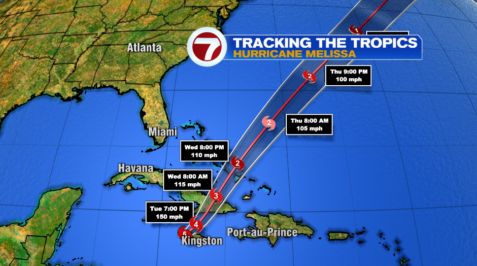 Moving forward, Melissa is expected to weaken slowly as it continues to encounter land masses in the Caribbean. That also means we’re not done talking about Melissa yet. From here it’s expected to make another landfall tonight in Cuba as a category 4 storm, move through the Caribbean as a category 3 and finally head to Bermuda as a category 2 storm.