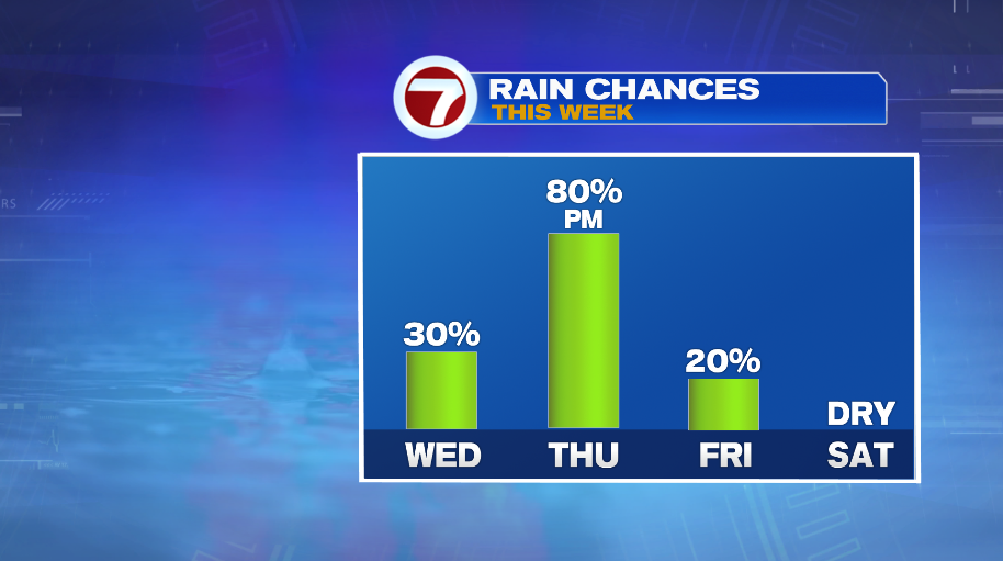 Rain-wise that’s our best chance of rain moving forward. Tomorrow is a damp, drizzly, raw day. It’s far from a washout, but it’s not pleasant. We’ll have cool temperatures, a good little breeze along with drizzle or a spotty shower or two. While most of the rain is done Thursday night, a spot shower or two could be wrapped in on the backside of the storm on Friday — again, a very low chance.