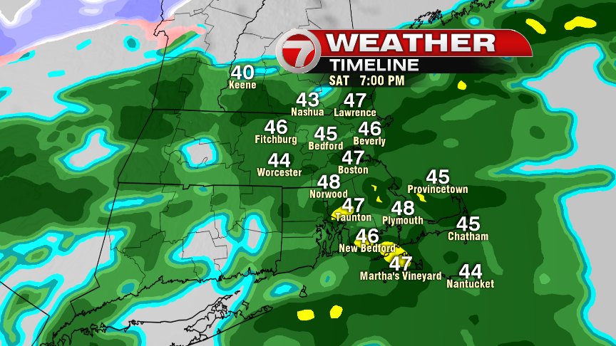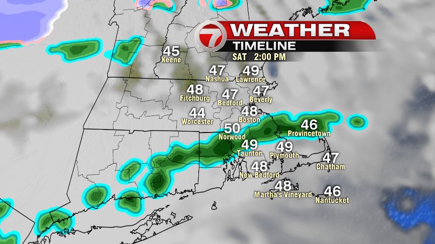 As rounds of rain continue to traverse Southern New England tomorrow, the heaviest rain will be focused along and just south of a cold front, slowing drifting south, through our area. Once winds change to the north/northeast, temps fall back into the mid 30s to near 40, creating a nasty day as raw and rainy weather prevails.