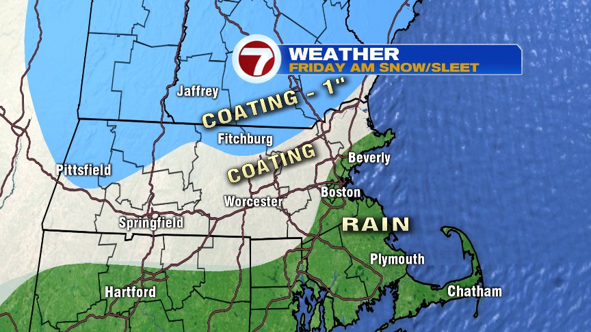Friday morning starts off with some slick spots, especially north and west of Boston as a bit of snow and sleet kicks off our next storm predawn tomorrow, through 8am. The milder air does work in by mid to late morning, allowing for the transition over to rain. Once temps spike into the 40s to near 50 late in the day, the wind gets gusty too. Those winds will gust out of the south at 30-40mph. Most towns pick up about 0.5″ of rain, although a few towns near the south coast catch 1.00″ with some localized downpours.
