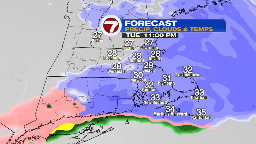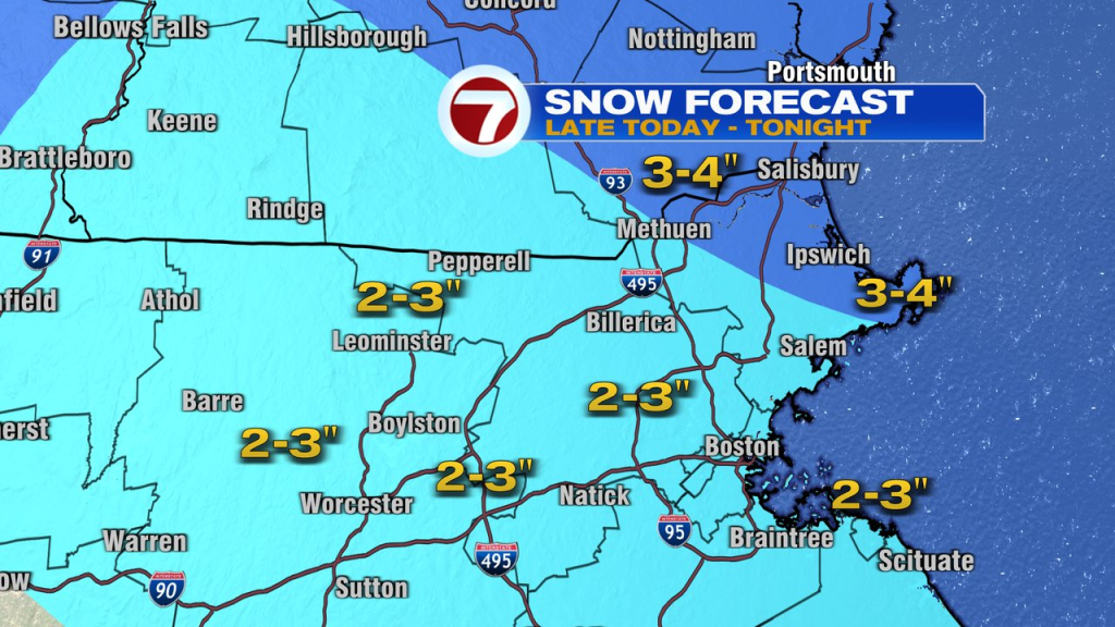 Late today and tonight, we’ll add in more snow. Not a lot, but at this point, the fact that road crews, plows and shovels have to come back out, creates some grumbling. Snow kicks in during the second half of the evening commute and becomes most widespread this evening. Most of it is done falling by 2am. All said and done, 2-3″ of snow is widespread with some locally higher totals, favoring Northeast Mass/NH. Much of VT, NH and Maine will pick up several inches of snow.