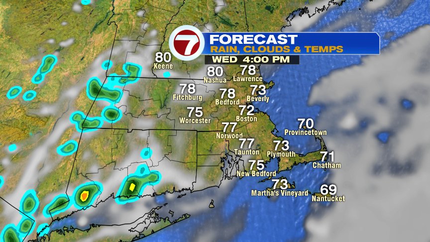 After those mid 90s yesterday, today will struggle to reach the mid 70s at the coast! Winds turn onshore and overall, it’ll be a much cooler day inland too with afternoon temps running close to 80 there. Overall, a nice day with lowering humidity too once we shake off a few spotty early AM showers/storms across Southeast Mass.