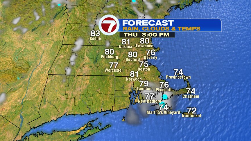 Thursday is solid… mid to upper 70s coast with some sea breezes, lower to mid 80s inland. Humidity in check too.