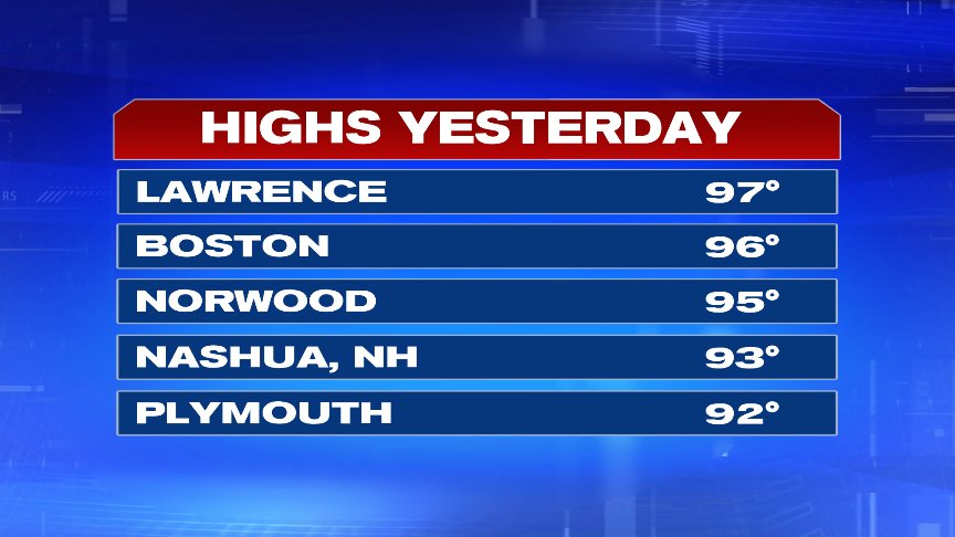 Hot enough for you? While 96 was not a record for Boston yesterday, it was enough to be the second hottest day of the summer as we fell just short of the 98 we hit last Tuesday. With that said, yesterday’s 96 was a more manageable heat thanks to the fact the humidity was quite a bit lower than it was last week. All and all, it was a good day for the beach/pool.