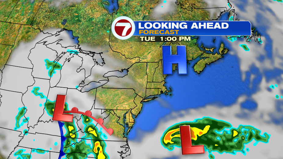 Monday and Tuesday, as of now, look mainly dry. The best chance for a shower on Monday is early in the morning. The rest of the day is cloudy and cool. A northeast wind will keep temperatures between 54-58º. These two systems look to stay pretty far from us on Tuesday as well. If the pattern continues as is, a high pressure system will block any rain from moving in. Highs will be in the mid 50s.