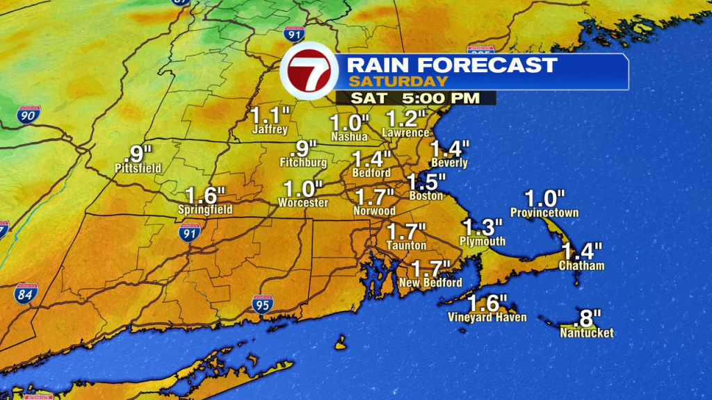 1-2″ of rain will fall across the region, with the highest totals near the I-95 corridor and parts of Southeast Mass.