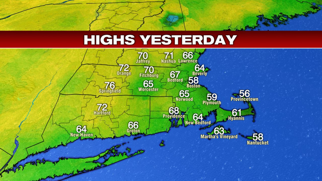 Blue skies won out yesterday and with a ton of sunshine, temps quickly warmed up. While it was cooler at the coast, the overall day was a great one to get outside and enjoy some fresh air. Temps ranged from the 50s at the coast to the 60s and low 70s inland.