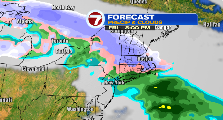 Right now, it looks like this storm may start late Friday morning as rain or a wintry mix, but quickly change to snow north of the Mass Pike. Areas along and south of the Pike will take longer to changeover, but will see snow showers as well.
