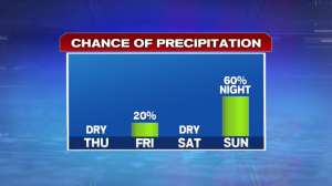 The bulk of the showers move out by mid-afternoon, allowing for drier conditions to return Friday night and into Saturday.