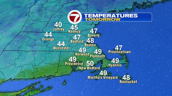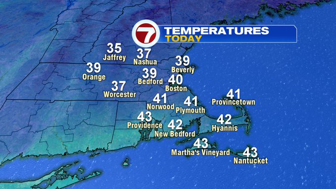 Saturday features highs into the mid 40s under mainly sun-filled skies. We get a few extra clouds Sunday ahead of our next system, with the leading edge of rain sliding in Sunday night, so the Patriots game should be dry since the showers will hold off until Sunday night.