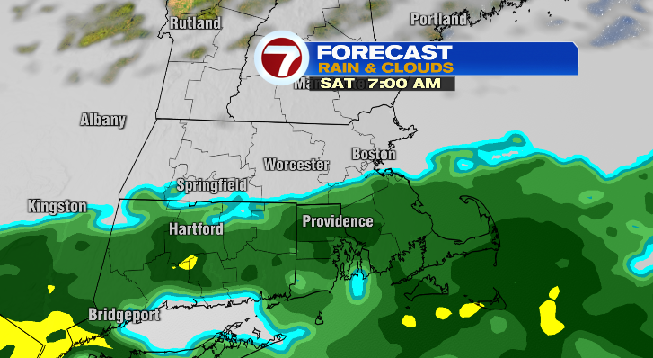 Overnight, closer to the pre-dawn hours of Saturday morning, rain showers will push in. The greatest chance is southeast of the Mass Pike, but near it there could be showers, too. The farther north and west you are, the less likely you’ll see rain. The showers end by the mid afternoon at the absolute latest. Highs will reach the upper 40s after morning lows in the upper 30s.