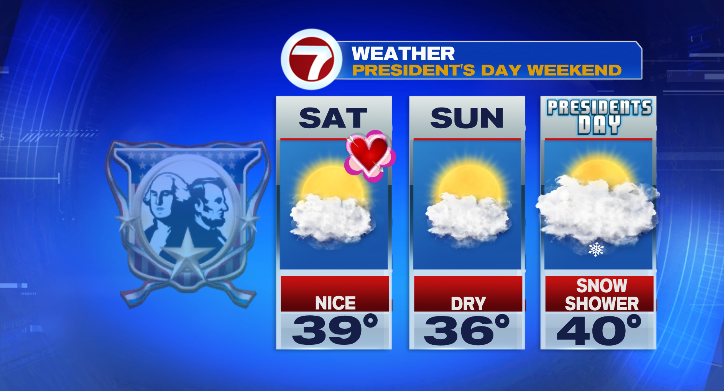 Monday is Presidents’ Day, so many of you have the day off, but morning temperatures will drop to near 20 with highs near 40 degrees! That’ll feel amazing. Again, there may be some snow or rain around, with the chance highest over southeastern Mass. Nothing is set in stone just yet, so look out for more updates this weekend.
