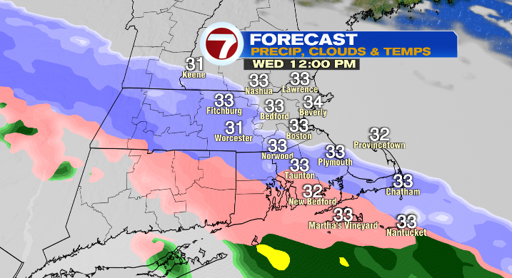 We’ll still be a miss for the snow. At the very most I’d say an isolated snow shower is possible over the islands or the south shore, but that chance continues to dwindle. Tuesday morning there’s a chance for an isolated light snow shower early in the morning. The day starts cloudy with a little sun in the afternoon. Highs will be mild in the low 40s after a morning in the 20s.