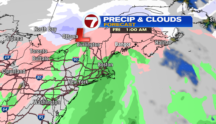 Late-week a bigger storm system will develop over the Midwest and head into New England on Friday. Rain is expected for most of the area, with some snow possible for northern New England. Although rain is the most likely scenario with this storm, a slight shift in the storms path southward could allow snow to move as far south as the Massachusetts New Hampshire border.