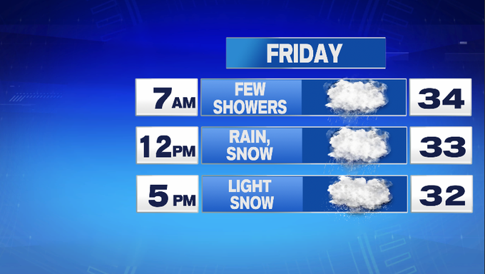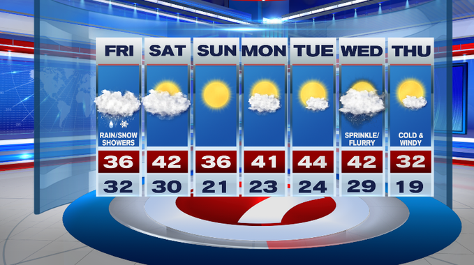 7Weather – The dreary weather continued today with some drizzle, light rain and temperatures falling into the 30s. Tomorrow brings us rain and snow showers, then we finally see some sun for the weekend.