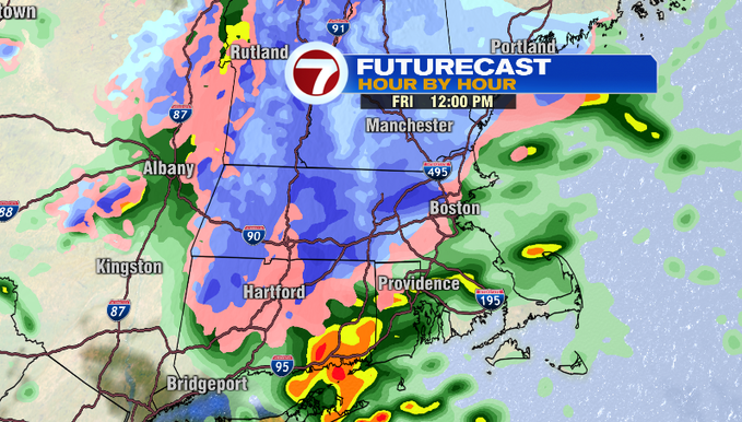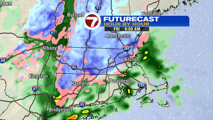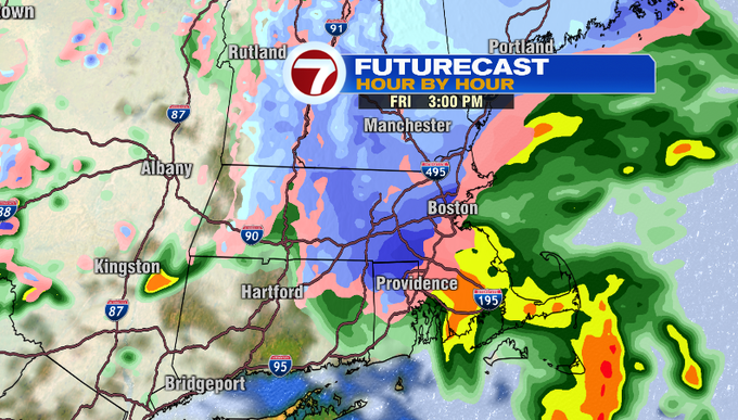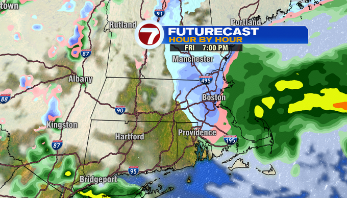 Let’s time out those rain and snow showers. Even before the morning commute, western and central Mass will see snow. Areas north and west of Boston will see showers transition from rain to snow by midmorning. Midafternoon/before sunset, rain turns to snow within the 128 corridor. Light snow showers linger through the evening. Most of SE Mass will just see rain showers with this as temperatures should stay in the upper 30s tomorrow night. It’ll clear out west to east Friday night.