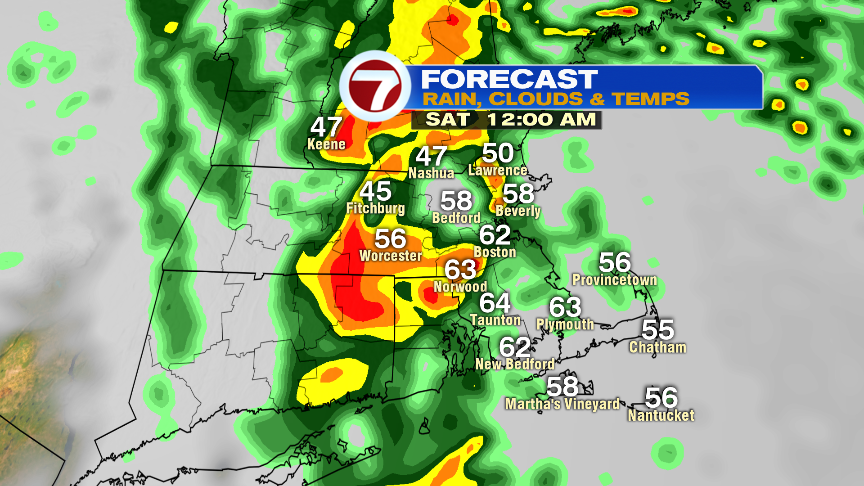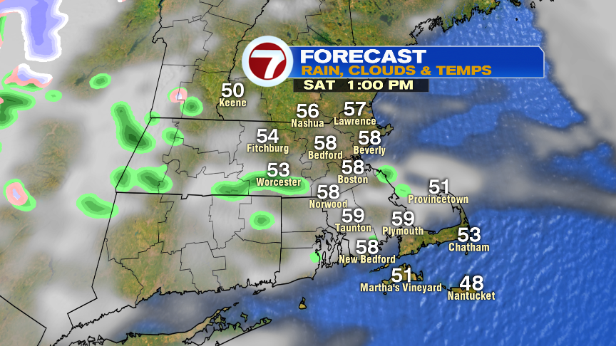 After back to back nice afternoons, we get a clunker today as wet weather moves back in. With an onshore breeze, showers in and out and a lot of clouds holding on, it will be a damp and cool Friday. While we’ll catch some breaks in the rain at times this afternoon, keep the umbrella handy. The heaviest rain works in tonight with downpours and thunder at times into the predawn hours Saturday.