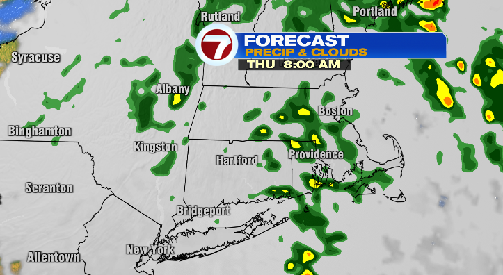 It’s been a gray day for most, and we’re not quite done with the dreary weather just yet. As a cold front closes in on Southern New England, clouds will increase even more overnight. We’ll also see showers and some steady rain between tonight and the end of our Thursday.