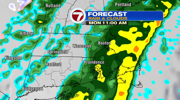 The heaviest rain will be early Monday morning, before lighter rain arrives late morning.