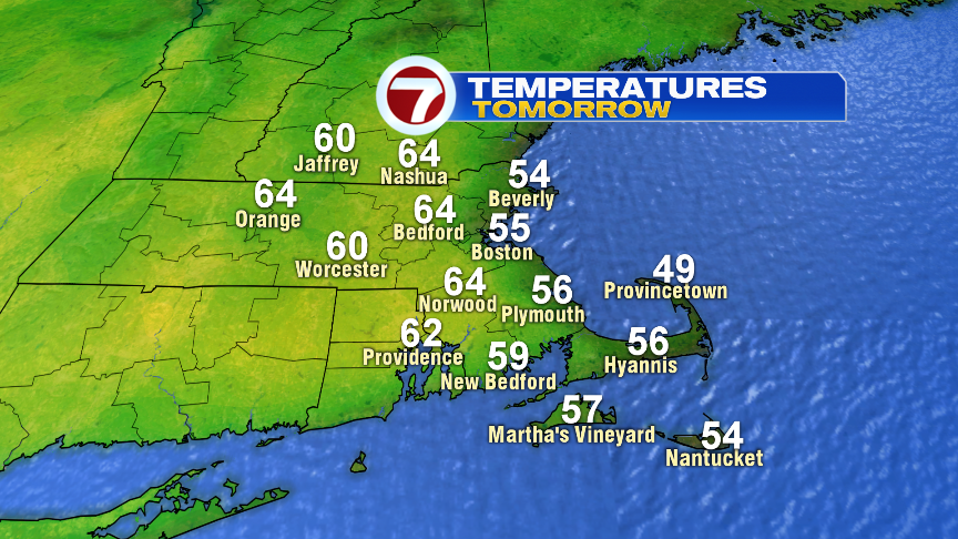 Tomorrow is another nice day with temps in the mid 60s inland, but only in the 50s at the coast as sea breezes kick in. More showers arrive Friday, with locally heavy rain possible Friday night.