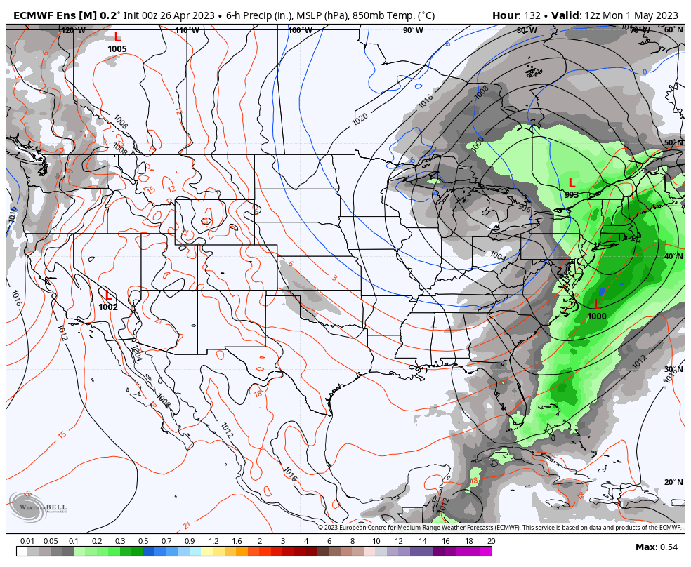 Tomorrow, the pop-up shower chance is farther east, as anywhere will be fair game for a passing shower or two in the afternoon. It’ll be cool and mostly cloudy as highs hold in the low to mid 50s. Not a washout of a day, but certainly chilly and a bit dreary at times.