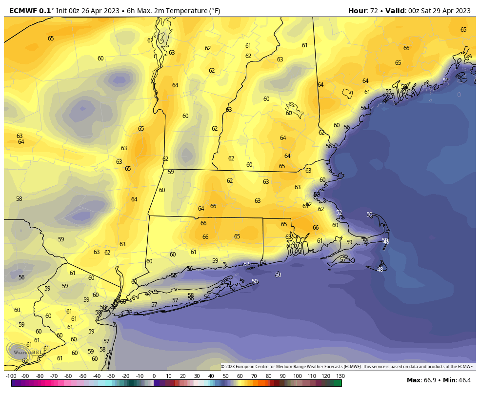 Friday is the pick of the week. Highs head for the mid 60s inland and run in the 50s along the coast under a mostly sunny sky.