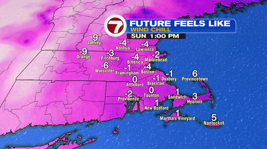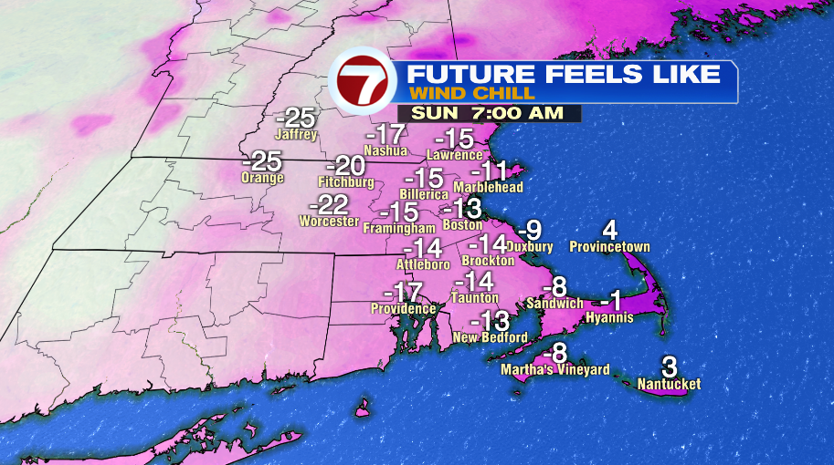 The wind chills on Sunday will be pretty brutal. Sunday morning we’ll see wind chills drop from -10 to -20° with a few spots touching -25° at times. Sunday afternoon remains quite bitter. If we’re lucky, we’ll see the feels like temperature make it to 0° Sunday afternoon. Even if we make it there, most of the day will be spent with subzero wind chills. Bundle up!