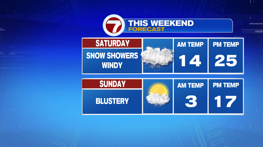 Changes are on the way for the weekend, both snow and cold are inbound. A clipper system will dive out of Canada on Saturday and move through New England. Saturday will be windy with snow showers as that cold front passes through. The snow is not steady all day, but there will be scattered snow showers around for the entire day Saturday. As that front clears Saturday evening and snow moves out, then the cold will move in. By Sunday highs will be back to the teens (one of the coldest days of the winter so far), but the wind will make it feel even worse.