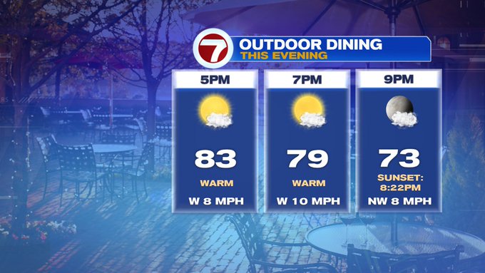 If you’re planning on getting a bite to eat this evening, it will be nice for outdoor dining.