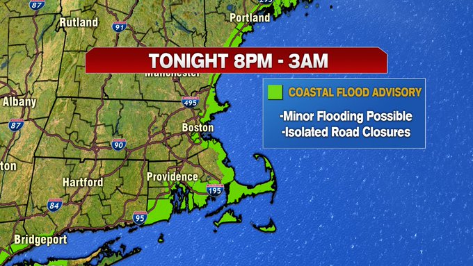 Also, to note, tonight, a Coastal Flood Advisory has been issued around high tide. Some minor splashover is possible.