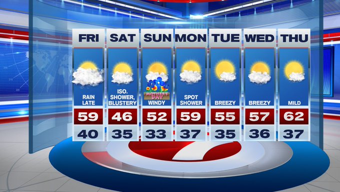 For Mother’s Day, after starting off with temperatures in the low 30s, temperatures rebound into the low 50s, but it will be windy making it feel like it’s in the 40s. At least we’re tracking sunshine for Mom!