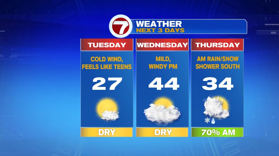 Now, temperatures are not going to nosedive today. We’ll cool until about sunrise and then flatline through the afternoon. Expect temperatures to hang out in the upper 20s this afternoon but with the wind it’ll feel like the teens. The wind is not to damaging levels like it was yesterday morning, but will stay breezy/windy like it was yesterday afternoon. But with colder temperatures today, the wind will have more of a bite.