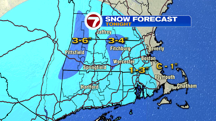 The highest snow amounts from this system will be in Worcester County, and for the Berkshires in western Massachusetts. 1-3″ of snow are expected for much of the region by early Wednesday morning.