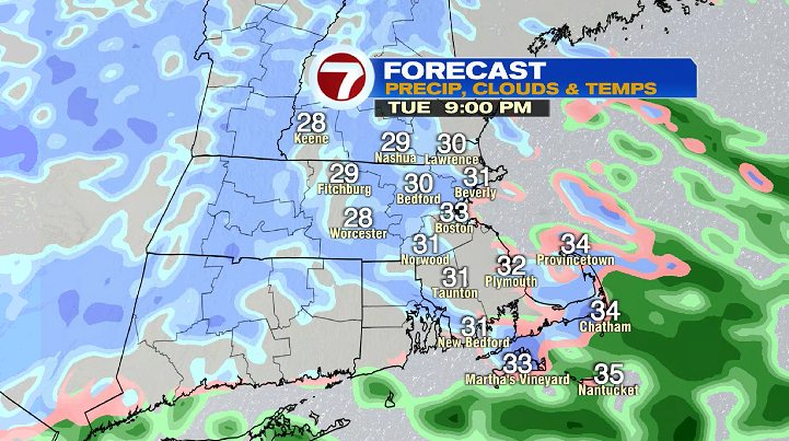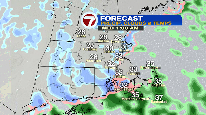 7Weather- A Winter Weather Advisory is in effect for areas outside of 128 until 1 PM Wednesday. Expect slick travel this evening, and for some of the overnight hours.