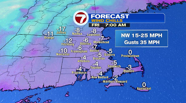 Here comes a cold blast of air! If you have the option of working from home, you might want to stay home on Friday. It is going to feel very cold. Morning temperatures will be in the single digits, and highs reach near 20º in the afternoon. Add on the gusty wind, and it will feel below zero in the morning/evening, and near zero in the afternoon. A day to wear all of the winter layers.