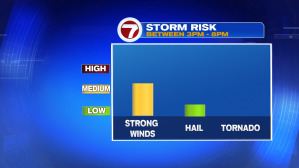 The Storm Prediction Center has put areas just to the north and west under a slight risk for strong to severe thunderstorms this afternoon and evening, with a marginal risk for central MA and Merrimack Valley into southern NH with strong winds and hail being the main concerns between 3PM – 8PM today.