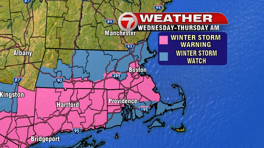 - Coastal Concerns: Astro tides are higher than they were with the last storm… up to 10.12′ for Boston – and add in a 2.5 to 3′ tidal departure on top of that. There could be minor to pockets of moderate coastal flooding, especially along the South Shore, Cape and islands during the early Thurs AM high tide (around 3:15am). A Coastal Flood Watch has been issued: