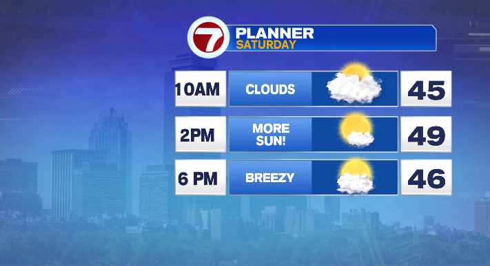 On top of that, these stubborn morning clouds finally get a move on, leaving us with sunshine by the afternoon. It’ll be breezy (gusts in the 20s), but a really nice day to get outside.