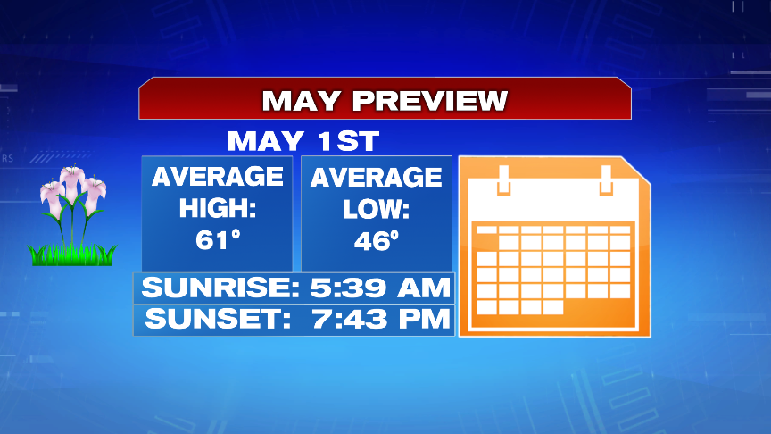 By the end of May, we average 71 with over 15 hours between sunrise and sunset.