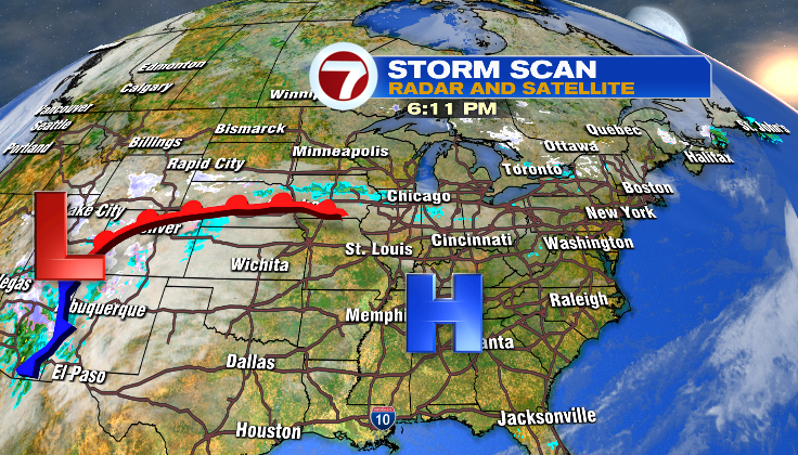Meanwhile, a low pressure system developing over the Rockies will tap into cold air and drag it across the Plains, Midwest, and eventually into New England later in the week.
