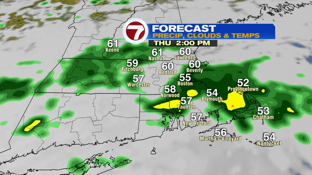 Rain chances increase tonight and tomorrow morning with locally heavy rain possible near the south coast, RI and CT. Rain tends to taper off early to mid afternoon while it’ll remain cool with temps running in the 50s to low 60s.