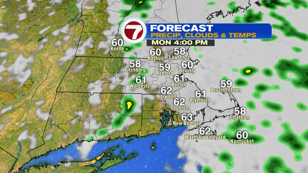 After some solid weekend weather, we’ll track some showers and storms to kick off the workweek. The bulk of the action is this morning, through midday, with embedded thunderstorms producing localized downpours. Generally, any downpour is fairly quick, but I’d expect many towns/cities to pick up about 0.25-0.50″ of rain through today. Temps today will max out in the low to mid 60s. Mid to late afternoon, showers that are left over are just isolated, and a few peeks of sun are possible too.