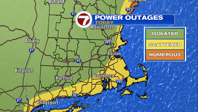 We’re in the midst of the strongest wind for today! Maybe it woke you up overnight. It’s been strong enough to knock out power for about 33,000 customers across Massachusetts (that’s as of 6:30 a.m.). Peak wind gusts so far reached 50-65 mph.