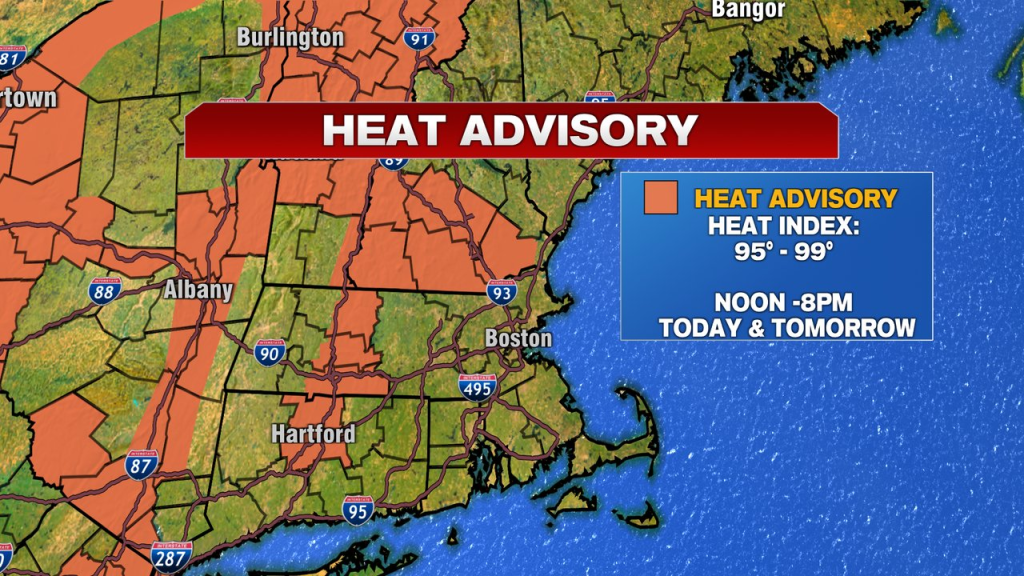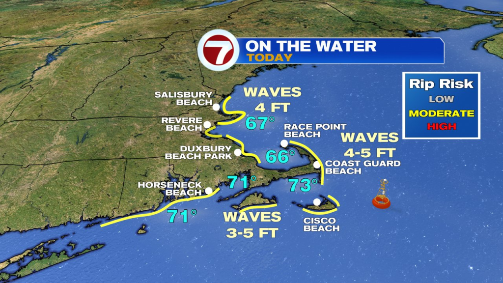 Back to school, back to work, and… back to some more summer weather. High temps yesterday ran close to 80 at the coast and near 90 inland. Today, it’ll be about the same, just even a couple degrees warmer. That’ll put temps 80-85 at the coast and 89-92 inland. There is a heat advisory in place for southern NH, away from the coast, and back into the CT river valley. That’s where the heat index will run 95-99 the next couple of afternoons. No school, no work for you today? You have a nice beach day ahead, just watch out for a few rip currents out there. Waves run 3-5 feet as well.