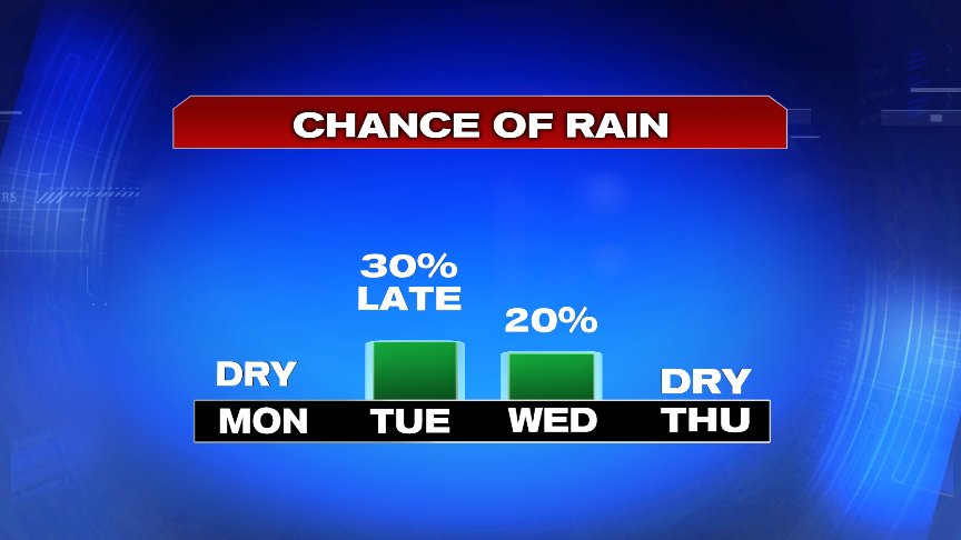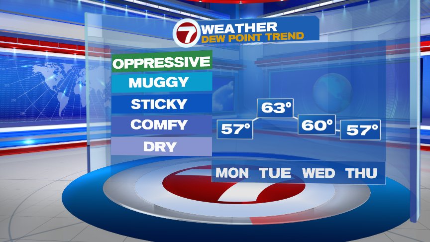 Tomorrow will be a bit more humid, with dew points in the 60s and temps running into the lower to middle 90s. We’re storm free for most of your pool or beach day, although near dinner time, into the evening, we’re fair game for a few scattered storms to rumble on it.