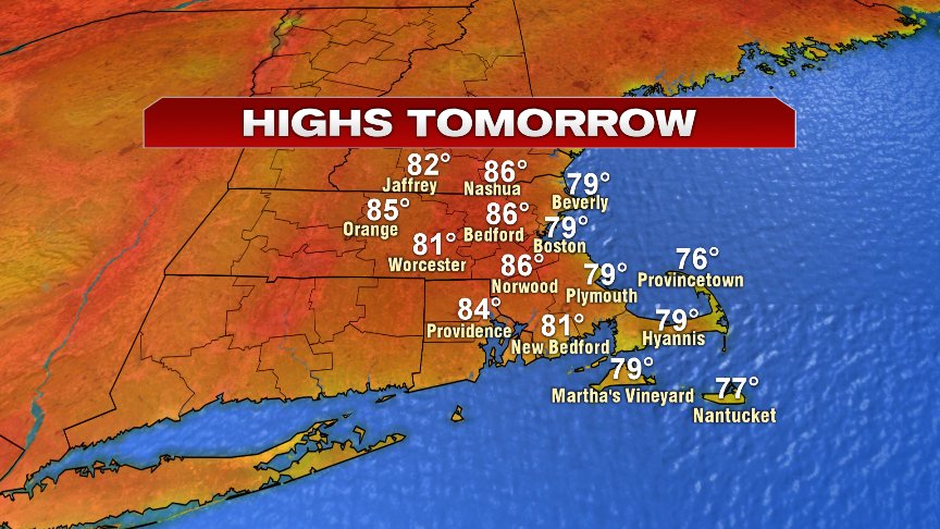 Tomorrow afternoon, we add a few more degrees after starting the morning off again in the mid 50s and 60s, coolest in the burbs.