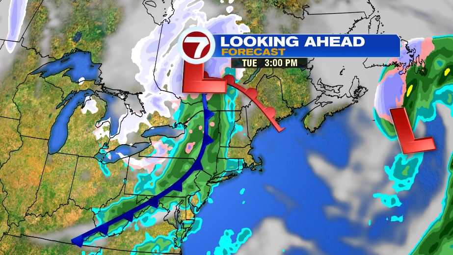 There could be a few peeks of sun here and here, but most of the day is cloudy. A low pressure just to our south keeps us gloomy and gives SE Massachusetts and the Cape & the Islands the chance for showers. Highs will be in the low 50s.