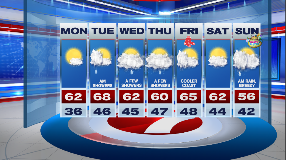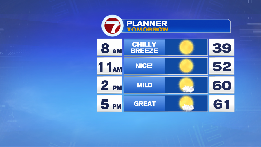 You’ll want to dress in layers on Monday. The day starts with a chilly breeze and temperatures in the mid and upper 30s. That breeze die down a bit for the rest of the day and highs hit into the low 60s.
